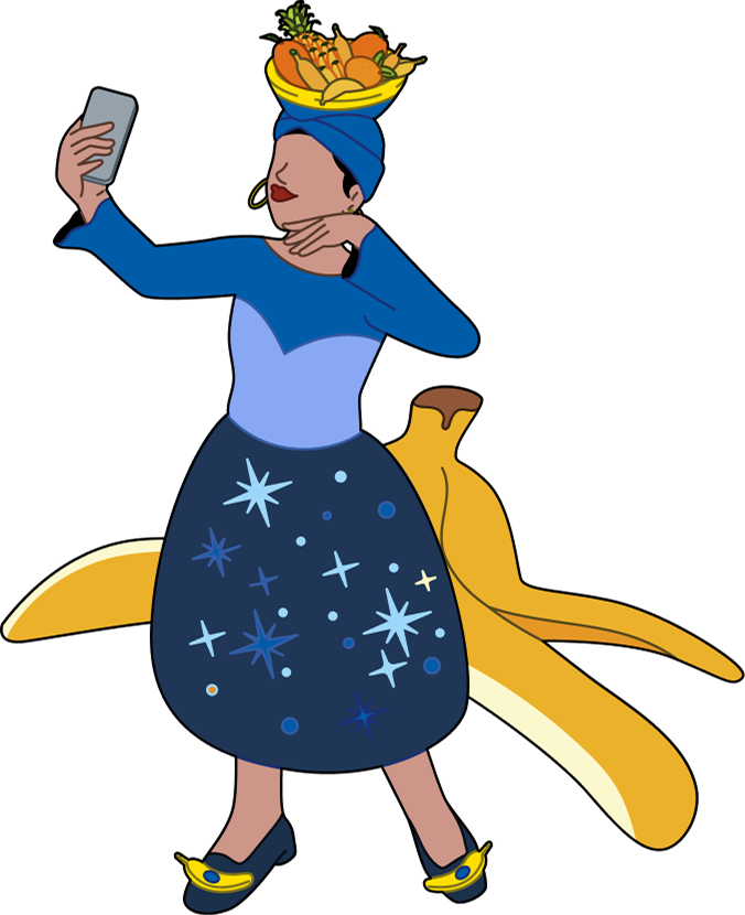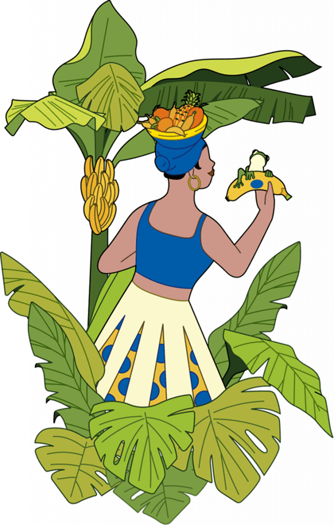 Dans cette œuvre, Miss Chiquita prend vie grâce à la vision moderne et pop de Jiaqi Wang, incarnant fièrement l’âme tropicale de la marque. Miss Chiquita tient la banane près de sa poitrine, symbole sincère d’authenticité, de tradition et de joie. Sa pose assurée et son expression chaleureuse célèbrent la nature tropicale de Chiquita, tandis que les couleurs vives et les paysages joyeux font écho à l’héritage costaricain de la marque.